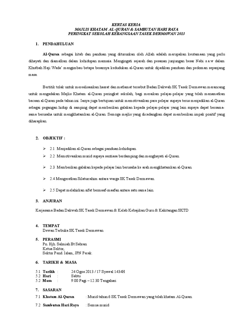 Kertas Kerja Majlis Khatam Al Quran 2013 Pdf