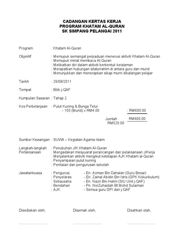 Kertas Cadangan Majlis Khatam Al Quran Pdf