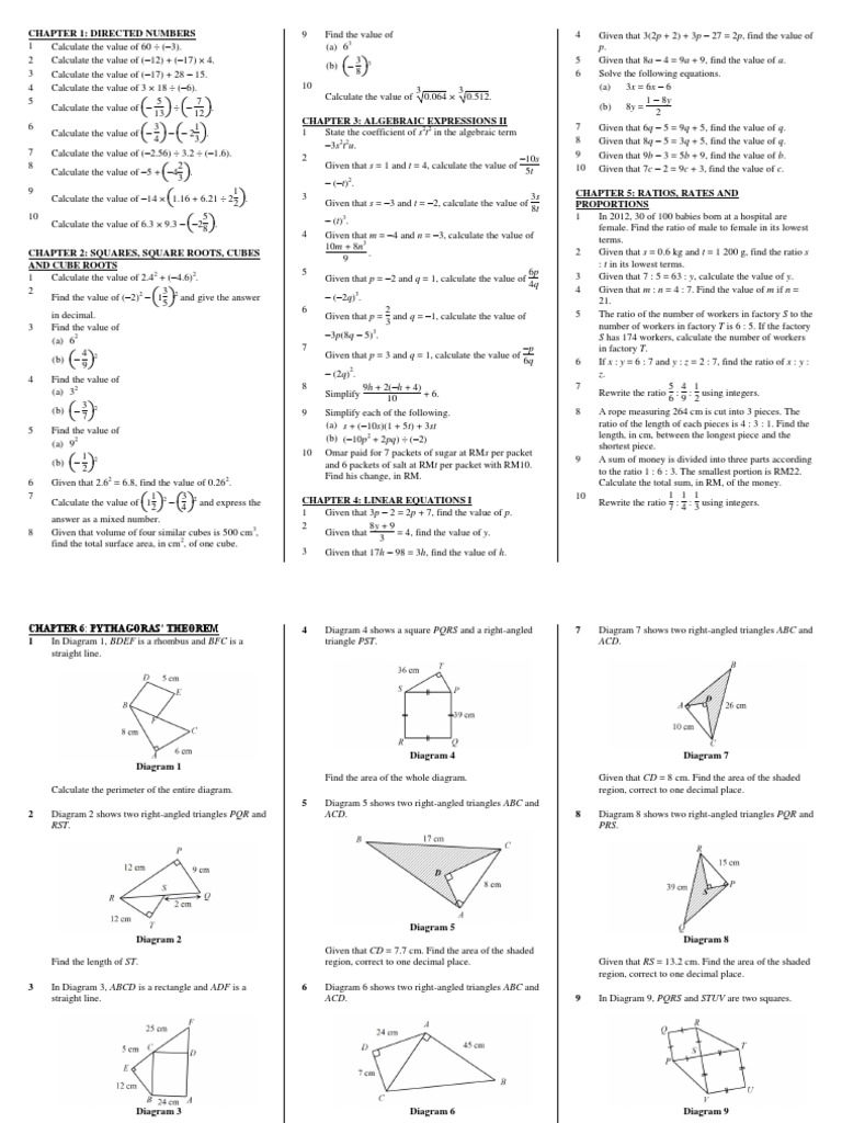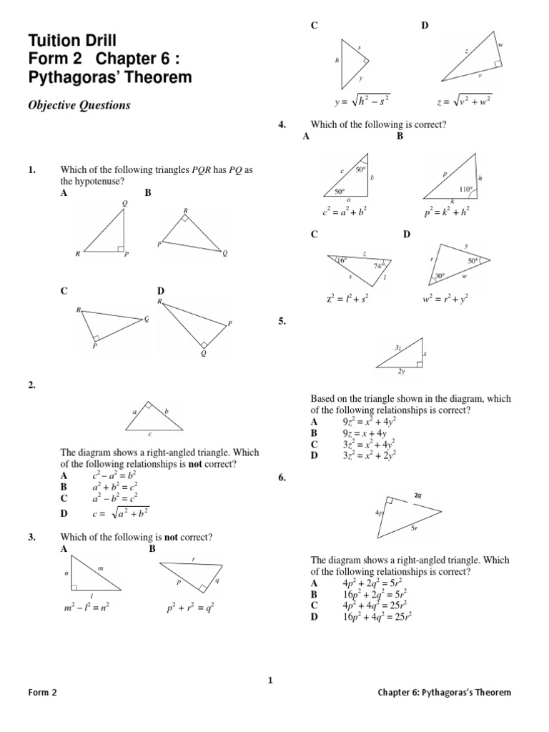 Review Exercise Form 2 Chapter 6 Pythagoras Theorem Pdf Triangle Geometry