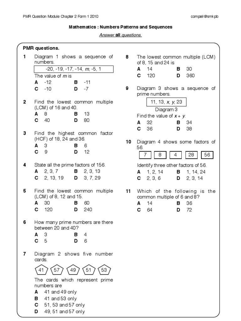 Mathematics Form 2 Chapter 1 Exercise Exercise Poster